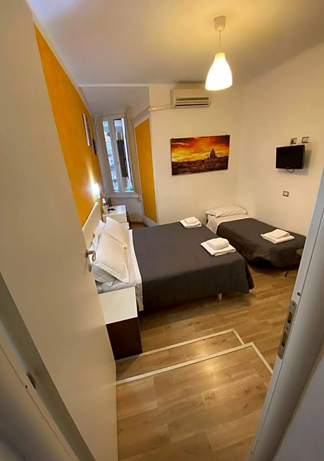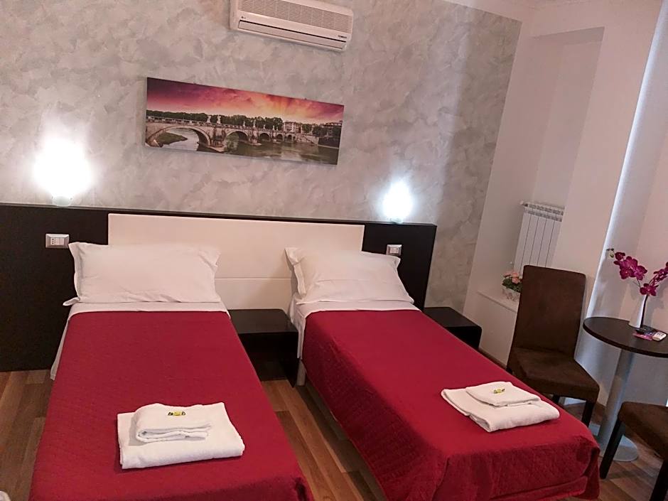 The location very close to Termini station and the Colosseum(15 minutes on foot) ,not far away city center .There is a market under same building.The room looks street and i couldnt hear any noise while the window closed.The beds are very comfortable. The breakfast is quite good according to a standart Italian breakfast.(it includes many alternatives food).