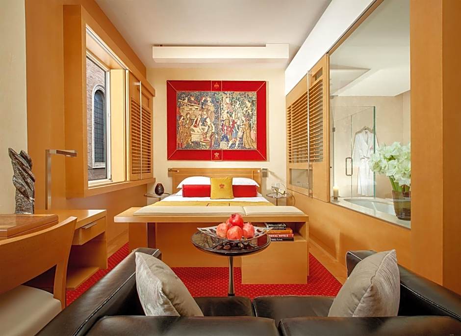 Food is excellent at this property, particularly for vegetarians and vegans. My partner has coeliac disease (gluten allergy) and the hotel was very understanding and able to provide suitable meals for her. The location is excellent in the historic centre, which is very central and enables you to walk everywhere. We paid for a small suite and the room was beautiful with a massive bathroom, shower for two (!) etc. The breakfast was excellent, they even had a harpist playing every morning.