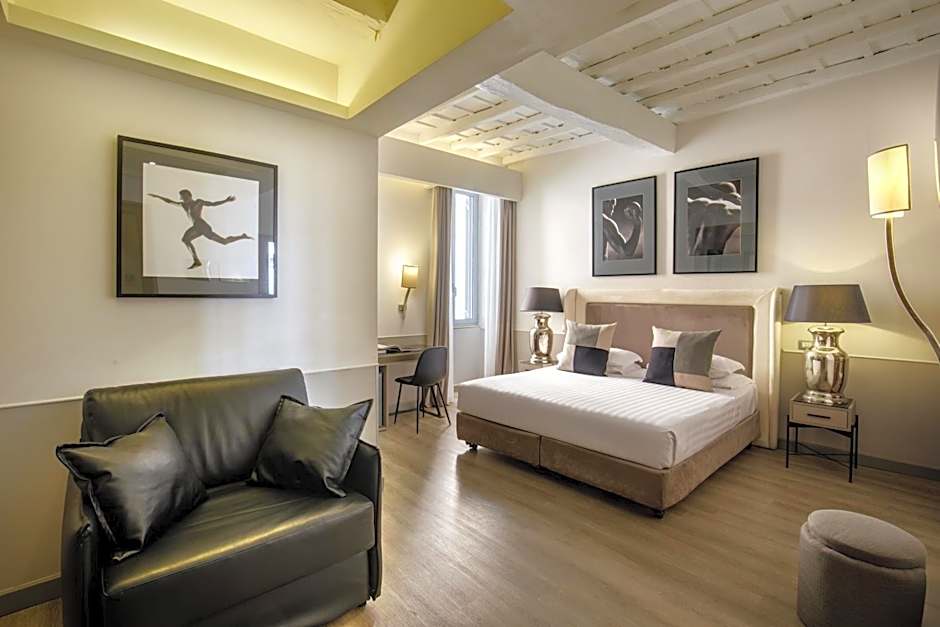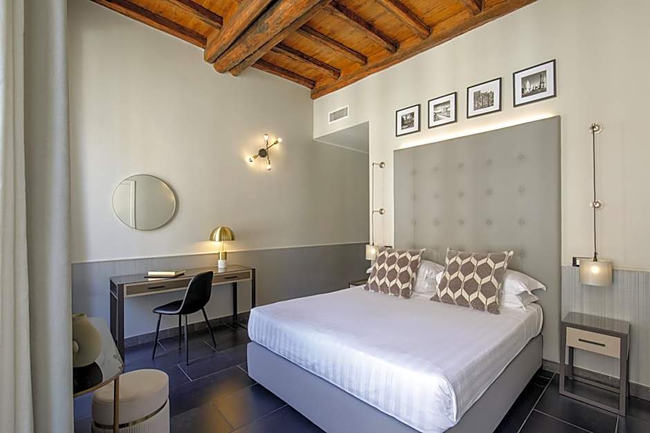 Rooms are designed to celebrate Rome’s character, with some options offering landmark views that frame the city’s iconic atmosphere. A private entrance and a terrace add a hint of privacy and charm, creating a personal retreat after a day spent wandering the Eternal City.