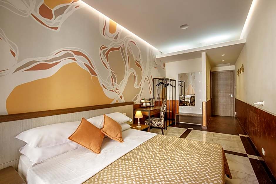 The Corso Grand Suite hotel offers a variety of room types. These include Triple Rooms with a balcony, Quintuple Rooms, Small Double Rooms, Double or Twin Rooms, Quadruple Rooms with a balcony, and Double Rooms with a balcony. Smoking is not allowed in any of the rooms. The rooms can accommodate different numbers of adults and children, and they have various bed sizes such as Twin beds, Queen size beds, and Double beds.