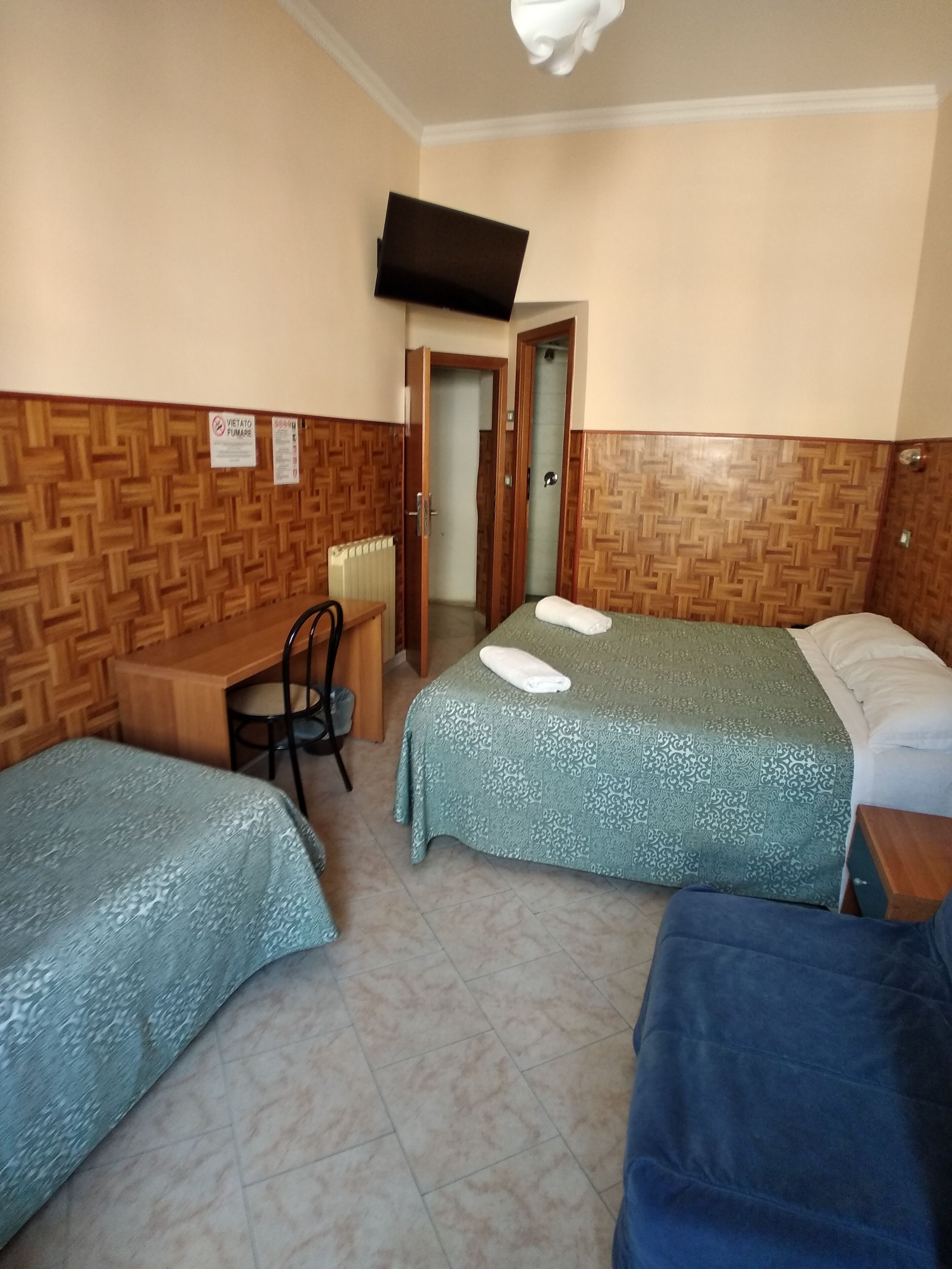 My private room was very reasonably priced, clean, quiet and comfortable and only a 5 min walk from Termini. I arrived just after midnight and let the hotel know in advance and they kindly checked me in with no extra charge. There is a small fridge by reception and the shower facilities were cleaned regularly. I also appreciated being provided with a towel, air con, space to hang clothes and a sink in the room. Whilst the hotel is basic, it has everything you need if you just want a good night's sleep in a central location.