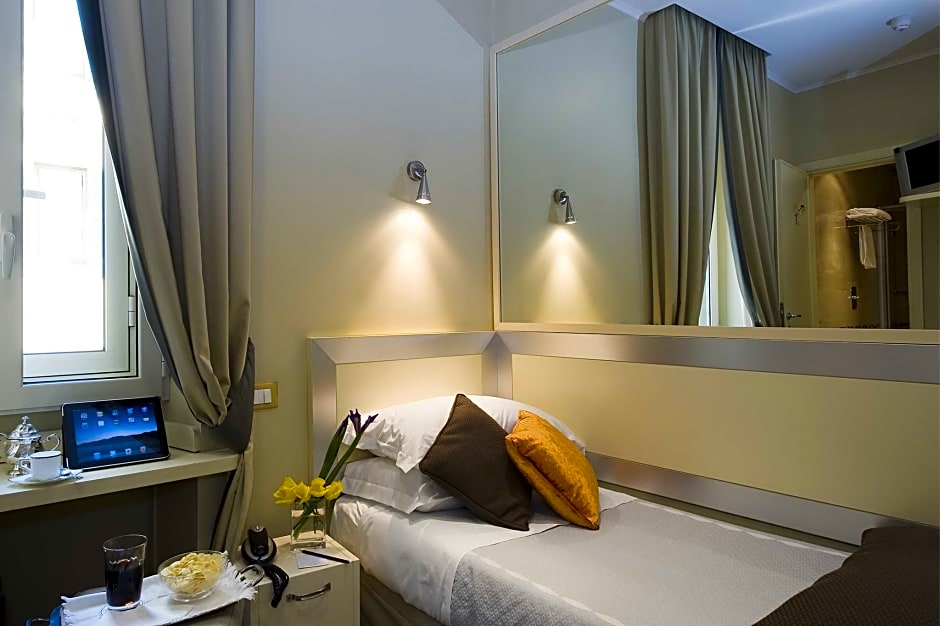 Arrived early and stored my bag. The staff was extremely kind and helpful holding my luggage and telling me my room would be available early so I could come back and ck in. Room spotless, made up every day, shower bed and pillows wonderful. Location fantastic ..old Italy narrow brick streets..restaurants bars...shops. Next to metro...breakfast was excellent...eggs bacon juice Danish..and the waitress Lucia...was a love. After first day she knew what I liked and fed me my cappuccino every morning without asking.