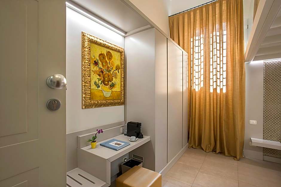 A historic, vintage building on a quiet, cobblestone lane, fully and expertly renovated and furnished with every up to date touch and convenience. The staff are marvellously friendly, efficient, helpful, and speak fluent English. The location is within 30 minutes' walk of nearly every site or neighborhood that anyone might want to visit while in Rome. There are literally dozens of places to eat within 5-10 minutes walk, plus minimarkets and pharmacies, as well as an open-air market. The room has a small kettle and an espresso machine, as well as a mini-fridge.