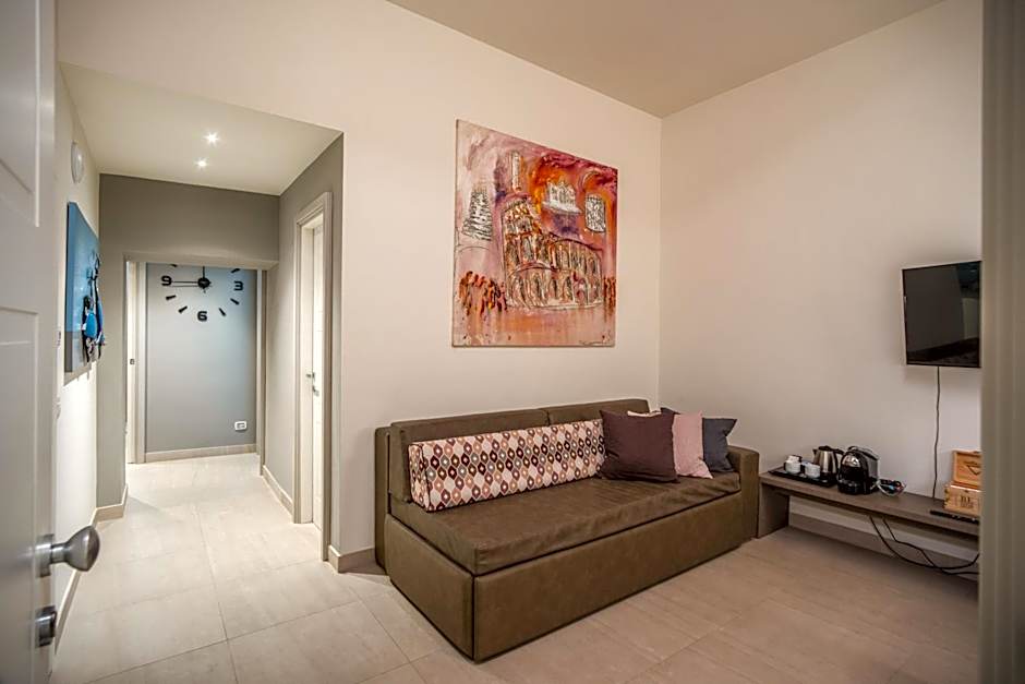 The location is excellent! We were able to walk everywhere we wanted to go in Rome without once having to take a taxi or public transport (except to and from the airport). There are small shops close by as well as restaurants. We had an apartment for 6 people and a separate room for 2. The apartment was absolutely fantastic. Big, fully equipped, comfortable, clean, two bathrooms with showers. The room was a good hotel room but next time we'd ask for a room with a shower as the bath wasn't very practical to take showers in. The staff were very friendly and helpful when asked about local dining options and when we needed to book a taxi from and to the airport.