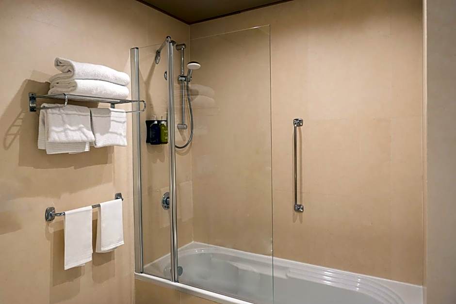 This larger air-conditioned room features a free mini-bar, a 32" LCD TV and a kettle. The bathroom comes with bathrobes and slippers, free toiletries and a hairdryer.