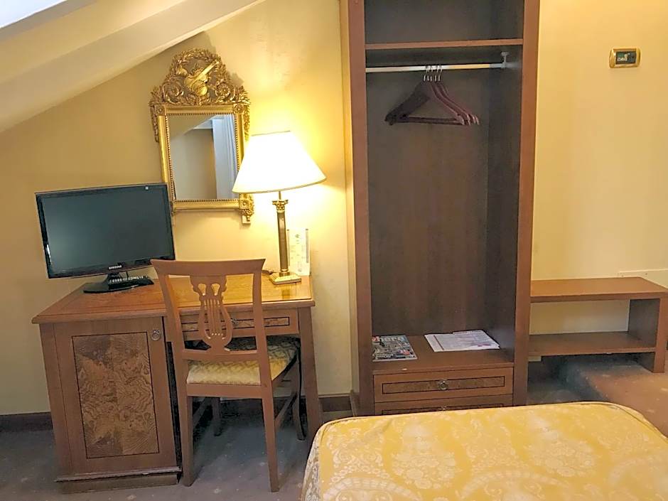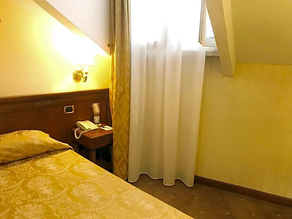 The room was very small. In the course of conversation checking in —first time in Rome?— I mentioned it was not even my first time at this hotel. So he gave me a bigger room. But with two open suitcases on the floor overstuffed with my exaggerated ideas of what I would need for seven weeks in Europe, there was scarce room for my feet. There was the bed, however, a single, not the usual queen. But it was heavenly! The perfect firmness I have missed in the hotels of the weeks before. Lying down in that bed was not only restful, but restorative. A big, big plus. To throw in the remaining minuses, let me say that the hot water was often intermittent and not as hot as one might like. The hotel is off on a side street from via delle Botteghe Oscure, so no street noise, but the walls are thin, and you hear everyone who opens or closes their door or speaks in the hall or volubly in their room next door if you happen to be sleeping late or napping the the afternoon. (I never tried the TV.). So much for the bad. What every other reviewer tells you about the superb excellence of the location is true in spades. I will certainly come back here next time.