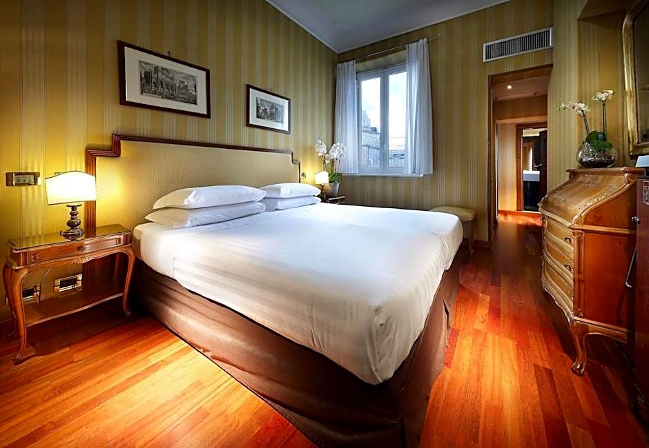 Location, location, location, you can basically walk to most of the important sites in downtown central Rome from the hotel. The staff is very friendly and helpful such that it feels Ike you are staying at a large B&B. The building itself is over a hundred years old and has both character and ancient ruins built in and nearby. The breakfast was abundant and the staff are awesome. The Honesty bar on the fifth floor is a nice addition. We had an outside terrace which was amazing!
