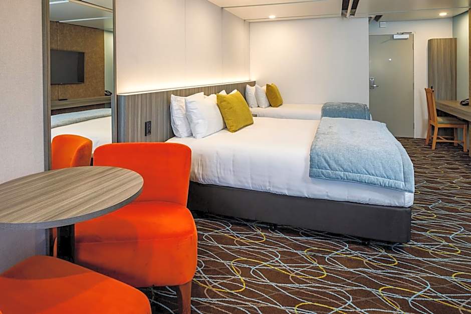 OMNIA Deluxe Double Queen is 248 square feet and includes 2 queen-size beds 150-154 width.