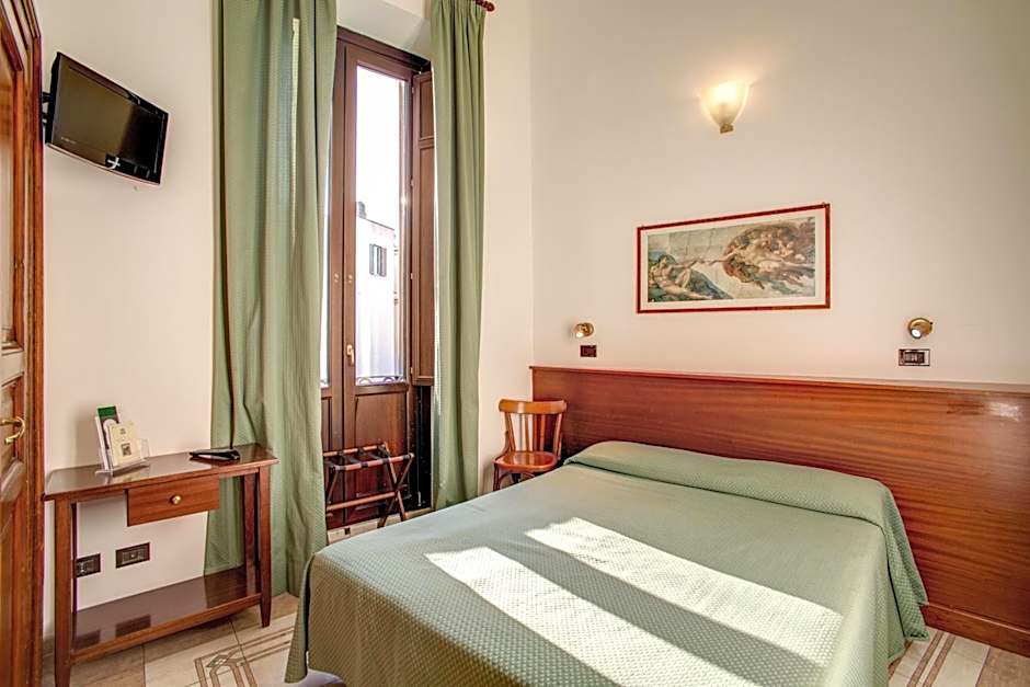 The hotel is situated in the heart of Rome, rigt next to Piazza Navona, a few steps away from the historical centre and the Vatican. The room is very nicely decorated and contains all the furniture and equipment one can need. Breakfast is served by very nice and kind ladies, and proposes a wide choice of sweet and savory food.