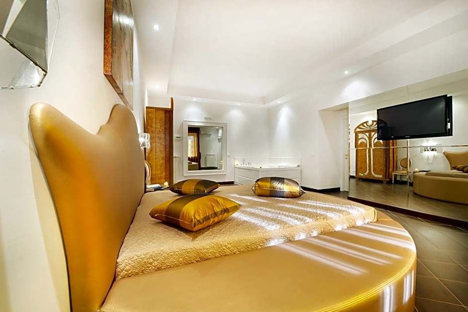 This room has a circular bed and a two-seater spa bath.