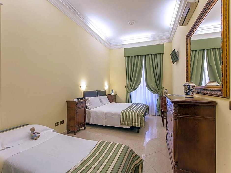 Hotel Regina Giovanna offers Classic Single Rooms, Double or Twin Rooms, Double or Twin Rooms in a separate building, and Triple Rooms. Smoking is not allowed in any of the rooms. Accommodations range from single occupancy to triple occupancy with bed options including twin, queen, and a mix of twin and queen beds. Room sizes vary from 129 sqft to 194 sqft.