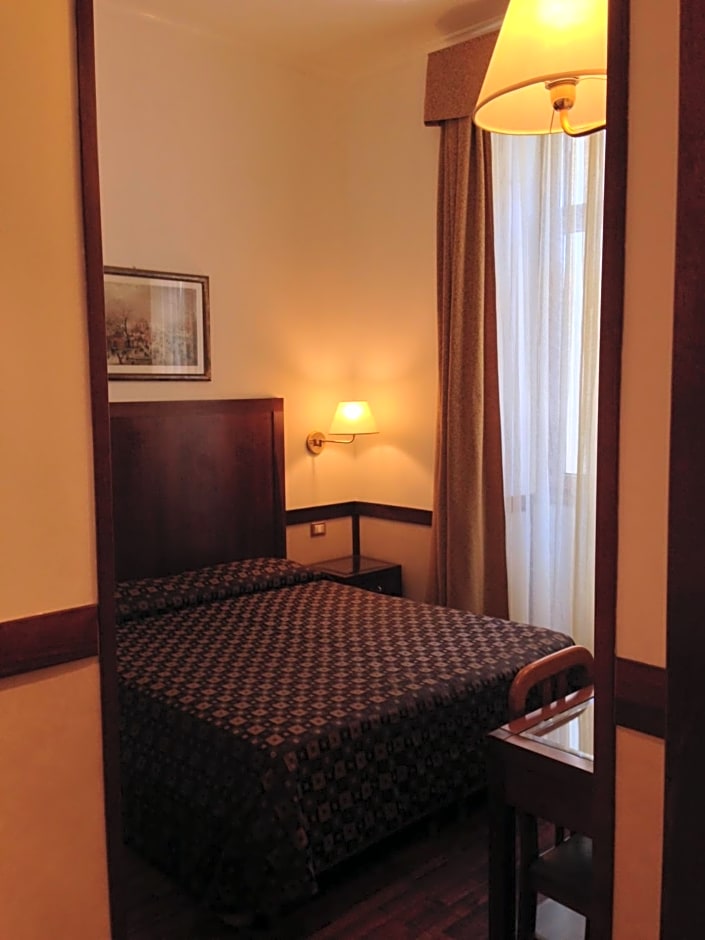 The hotel seems to be a little bit worn out, my room was really small (literally, walls were about 40-50cm around the bed), but there is one thing that beats all these little things: your personal patio (two chairs with a small table) and a real garden just outside of it. There are a few lemon trees with real lemons on them and a palm (probably). However, keep in mind that these are available only for rooms on the first floor. The location is close to termini (maybe 10 minutes of walk from the train station), however most of the restaurants and grocery shops close by 10pm in this area. If you get to arrive here late in the evening, make sure to buy some food (or just a bottle of water) at the train station. There is also a restaurant right in the hotel (with the access to the garden I mentioned above). The breakfast was good, buffet-style with a choice of ham, cheese, cakes, yoghurts and fruits. The room has a hairdryer, also there is a heated towel rack/radiator which really helps if you have wet clothings.