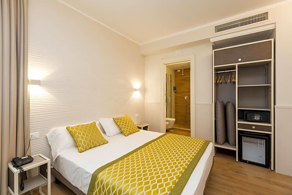 The hotel boasts a superb array of room amenities that cater to guests' comfort, including soundproof rooms equipped with air purifiers that provide a tranquil environment for relaxation. Each room features a private bathroom with a bathtub, along with complimentary toiletries for added convenience. Whether guests choose a standard triple room or a superior double room, they can rest assured that their accommodation will be equipped with everything needed for a cozy and enjoyable stay in Rome. After a day of exploring the city's treasures, the hotel's bar offers a cozy spot to unwind with a refreshing drink, making it the ideal place to wrap up a day full of Roman adventures.