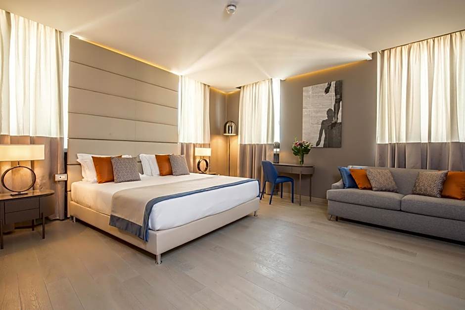The Orazio Palace Hotel offers a variety of room types. The Superior Double or Twin Room is a spacious option with a king size bed, twin beds, and a sofa bed. The Standard Double or Twin Room also has a queen size bed and twin beds. The Small Double Room is perfect for solo travelers with a double bed. The Superior Triple Room can accommodate three adults with a double bed, twin beds, and sofa beds. The Executive Double Room is a larger option with a queen size bed and space for one child. None of the rooms allow smoking.