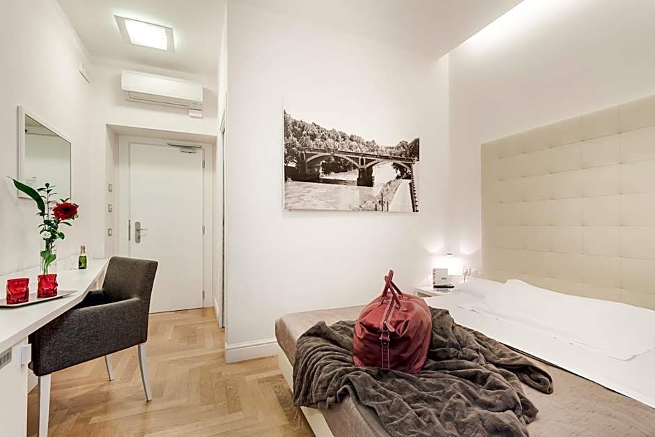 Modern soundproofed room with free WiFi, air conditioning and 26" flat-screen TV with SKY channels. It is fitted with a mini-bar, wood floors and fully equipped bathroom with shower.