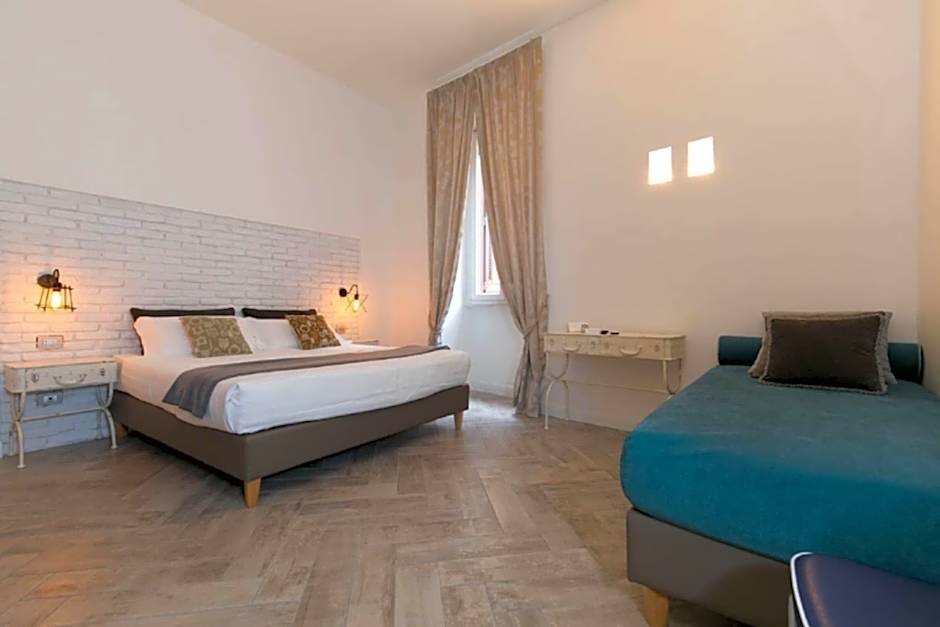 Luxury Triple Room, Annex Building (Via Rasella, 148) (1 Double Bed and 1 Twin Bed) is 301 square feet and includes 3 single beds 80-130 width plus desk, cable tv, hairdryer, ironing set, safe, and slippers.