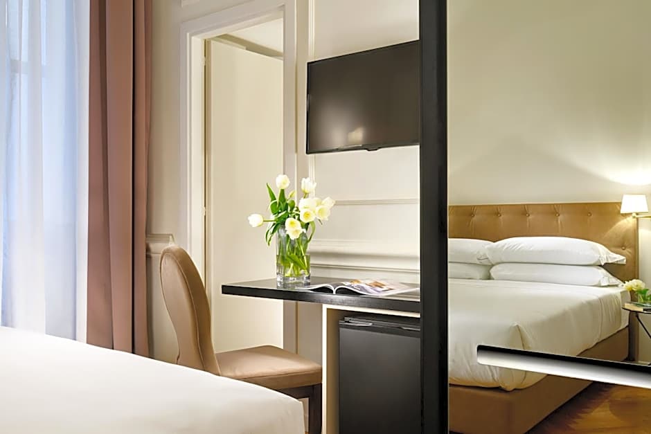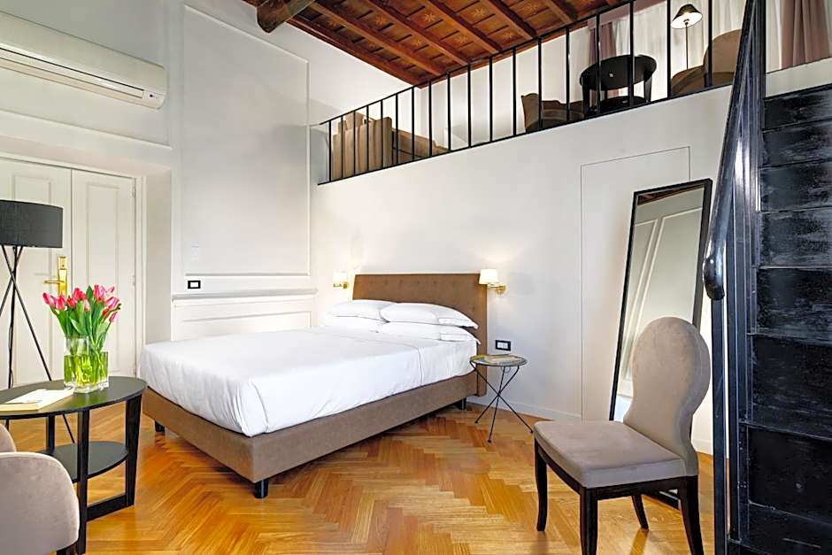 This double room has air conditioning, soundproofing and bathrobe. Some rooms overlook the San Lorenzo in Lucina Square. Some rooms feature views over the courtyard and are equipped with a bath.