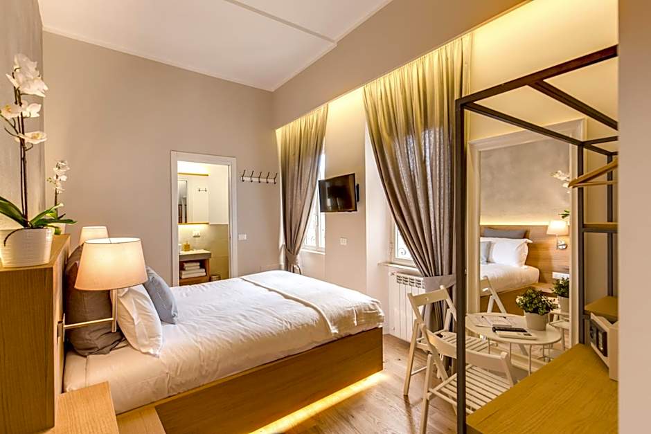 The Spanish Suite Campo de' Fiori offers Deluxe Double Rooms which have a room size of 194 sqft. Smoking is not allowed in these rooms. The rooms accommodate 3 adults and 1 child. The beds include 1 twin bed and 1 queen size bed.