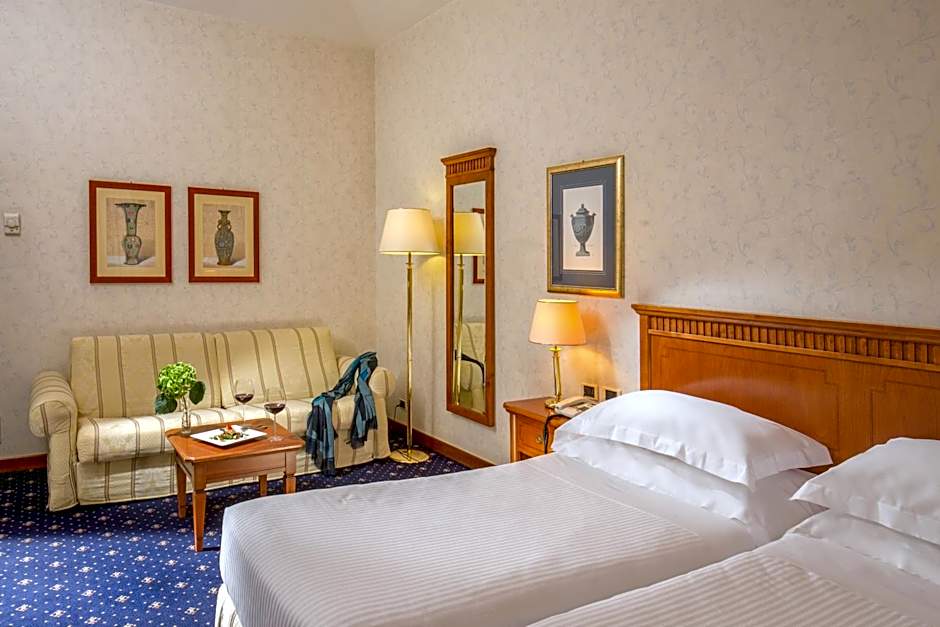 UNA Hotels Empire Roma is a 4-star hotel in Rome, Italy, located at Via Aureliana 39, 1,3mi from the city center. Amenities include free WiFi, an on-site restaurant, air conditioning, and soundproof rooms, with a 24-hour front desk on hand. Non-smoking rooms, wheelchair accessibility, an elevator, a garden, a bathtub, free toiletries, and a bidet complete the on-site offerings.
