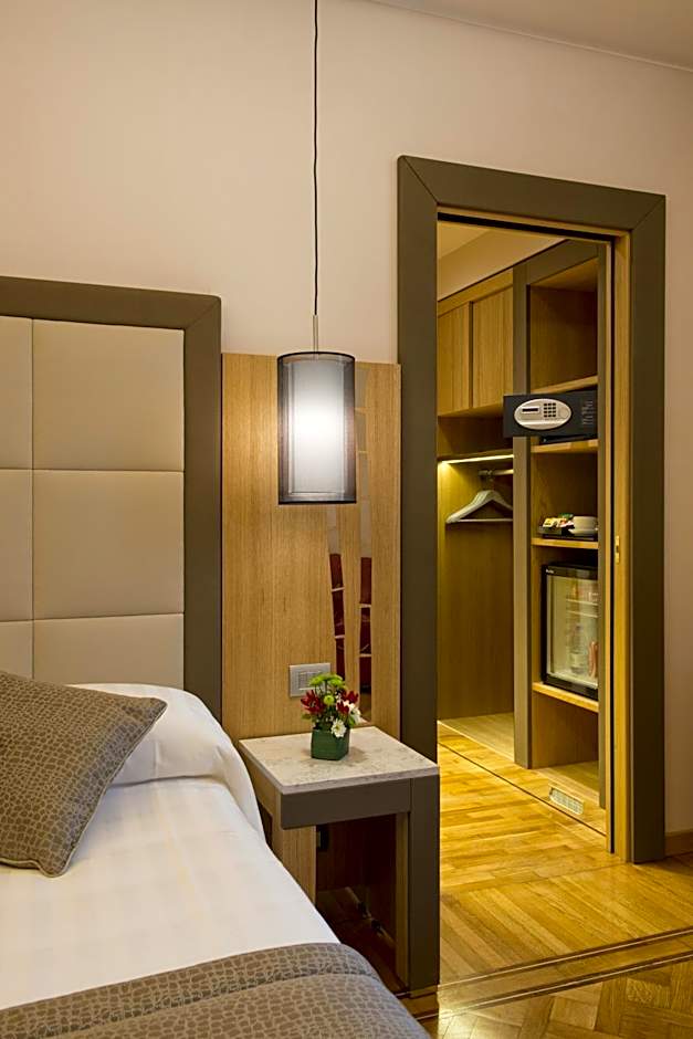 Elevate the view by opting for higher floors to enjoy a balcony and landmark vistas. After a day exploring Rome, the calm of soundproof rooms and the comfort of extra-long beds help unwind, while a terrace offers a relaxed outdoor spot and the on-site bar provides a casual pause before the next adventure.