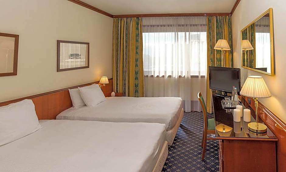 Nice room, clean, not brand new, but the bathroom is pleasant with a large mirror. Slippers and shaving supplies are provided. The room has a kettle, coffee and tea, as well as a complimentary minibar with water. Breakfast was standard: cold cuts, cheese, eggs, bread, vegetables, cereals, juices, coffee, desserts, etc.