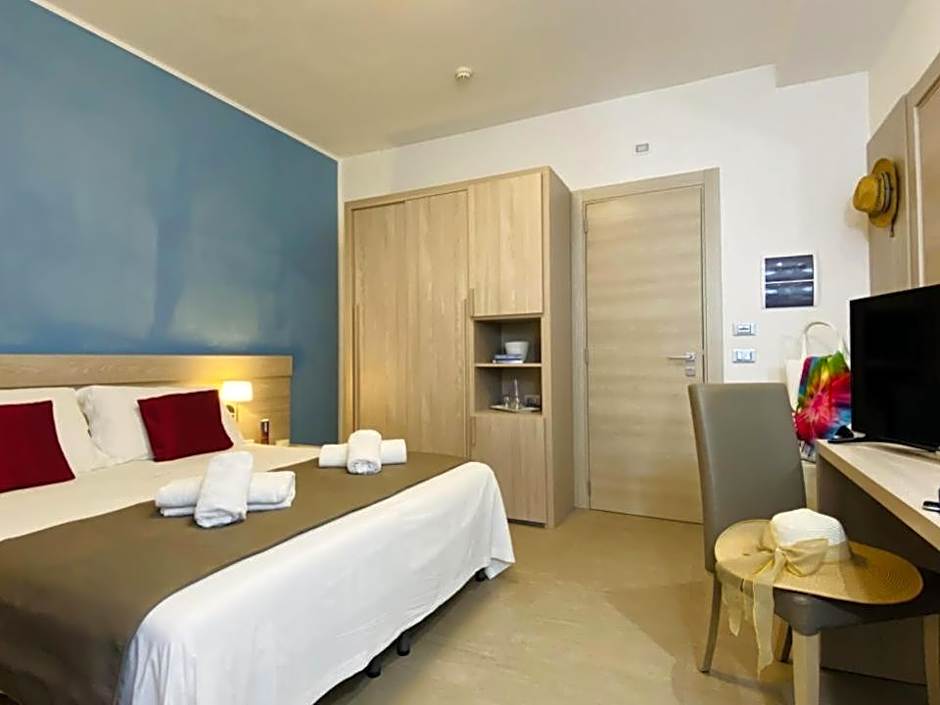 If you are looking for a nice hotel where you can sleep quietly, have delicious breakfast and a normal sized -room this is NOT the right hotel for you. The neighbors hotel were playing the loudest music and Party till 1AM every night!!! We asked kindly to change rooms (I am also pregnant) but the manager wasn't interested at all and they just told that they can't do anything. In the end we didn't even get a discount or something. The room was so small, we could even open our suitcase and finally had to put it under the bed!!! The breakfast was very Italian (no tomatoes, cucumbers, vegetables, eggs, oats) no healthy options at all. Last but not least, loud music also playing on the beach in the afternoon and you can not choose your sunbeds and you can not choose your breakfast table either. But if you like to party the whole night, love entertainment and cakes for breakfast, you will love the hotel