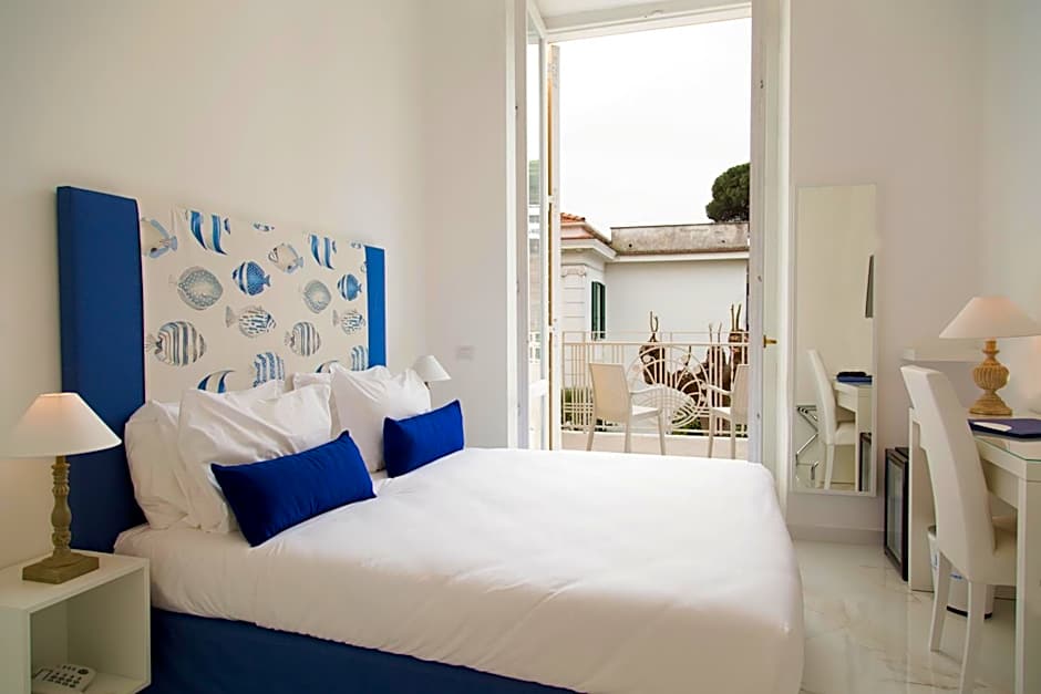 Larger room with balcony overlooking the surrounding villas and gardens. Comes with air conditioning, satellite TV and Vietri marble bathroom. Some have views of the Gulf of Naples and coast of Sorrento.