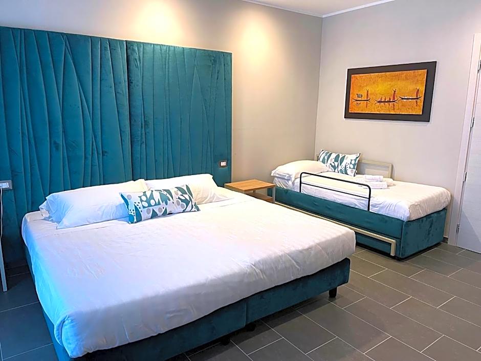 Hotel Sant'Elia offers a Classic Quadruple Room which can accommodate 4 adults and 2 children. The room size is 248 sqft and smoking is not allowed. The beds available in this room are 6 Twin beds and 1 Queen size bed. Additionally, they have Comfort Double or Twin Rooms which can accommodate 2 adults and 1 child. Smoking is also not allowed in this room and it offers 1 Queen size bed and 2 Twin beds.