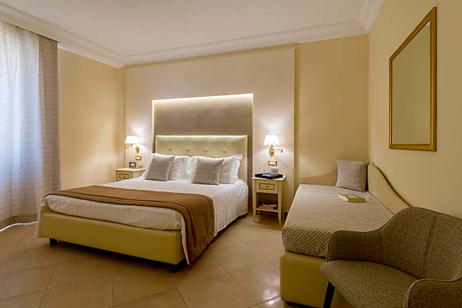 The Vittorio Emanuele Boutique Hotel offers Superior Double Rooms, Triple Rooms, Double Rooms, and Superior Double or Twin Rooms with Terrace. These rooms range from 215 to 258 sqft in size and can accommodate 3 adults and 2 children. Smoking is not allowed in any of the rooms, and bed options include Twin beds and Queen size beds.