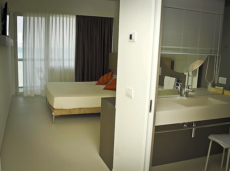 This hotel has been recently renovated and we were in a very comfortable small apartment Very clean and functional, I loved the bathroom and the 2 big windows that you could open. The position is excellent, right in front of the Rotonda and the beaches and in a 10minutes walk you reach the historic sites and enchanting streets of the city center. It was perfect for the purpose of our stay.