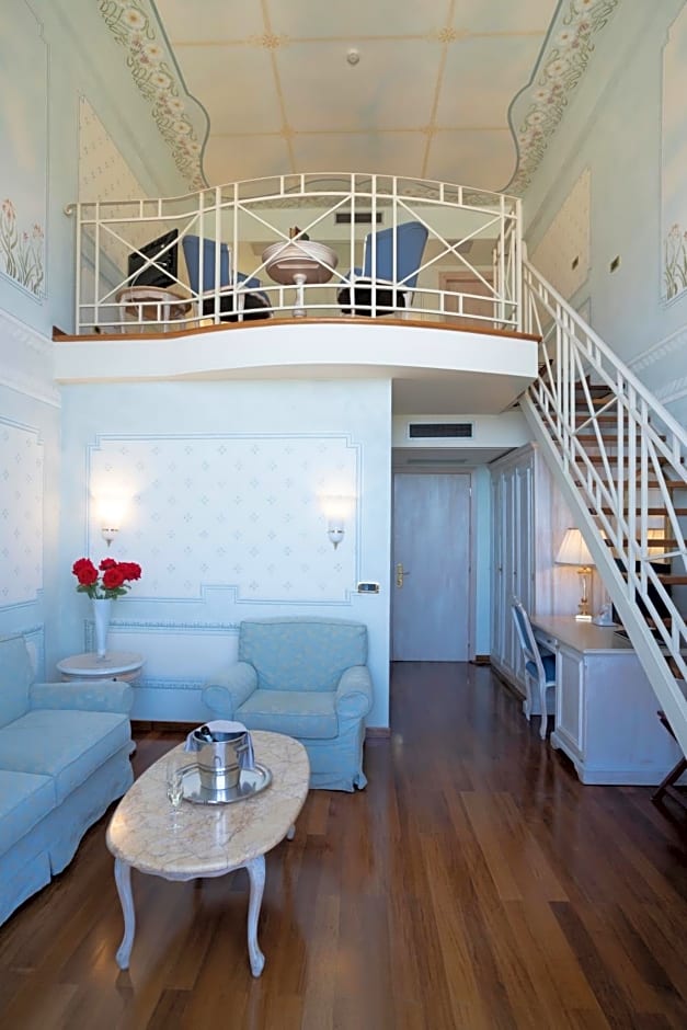 Spacious sea-view suite with raised sleeping area and a living area on the lower floor. Elegantly furnished with free Wi-Fi, a mini-bar and soft bathrobes and slippers in the bathroom. Please note that pets are not allowed in this room.