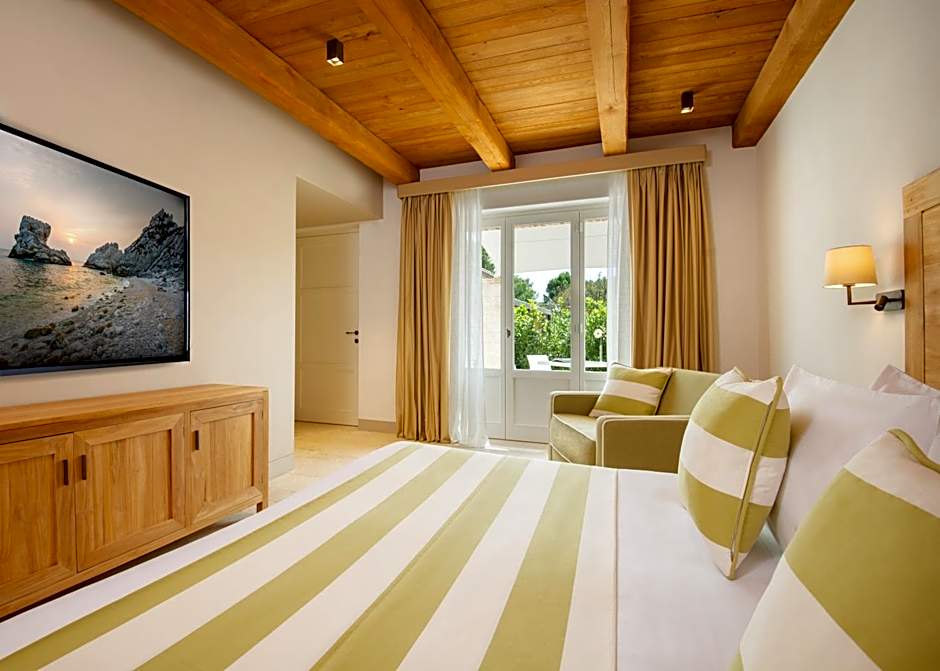 The hotel offers Standard Double Rooms, Deluxe Rooms, Deluxe Double Rooms with Balcony and Sea View, and Double Rooms with Patio. All these rooms have access to the spa, a bed size of either King or Twin, and a capacity for 2 adults and 1 child or 3 adults and 2 children. Smoking is not allowed in any of these rooms.