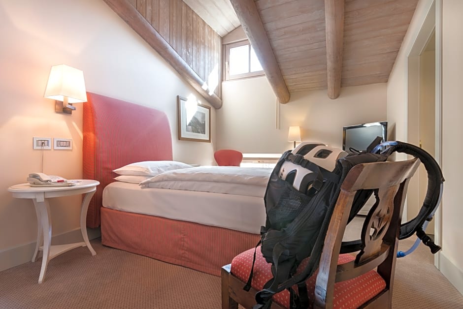 The Grand Hotel Della Posta offers a variety of room types including Single, Superior Deluxe Double or Twin, Deluxe Double, and Superior Double rooms. None of the rooms allow smoking and they all provide accommodations for 2 adults and 1 child. The bed sizes range from Twin to Queen to King, depending on the room type. The sizes of the rooms vary from 226 sqft to 377 sqft.