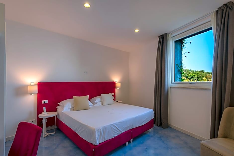 An adults-only oasis along Sorrento’s coast, this chic retreat invites travelers to unwind in style. The rooftop infinity pool, open seasonally, offers panoramic views that pair perfectly with sun-drenched days and seaside sunsets. A private entrance leads to a lively bar, a sun deck, and a terrace, while soundproof rooms and a 24-hour front desk ensure a private, hassle-free escape.