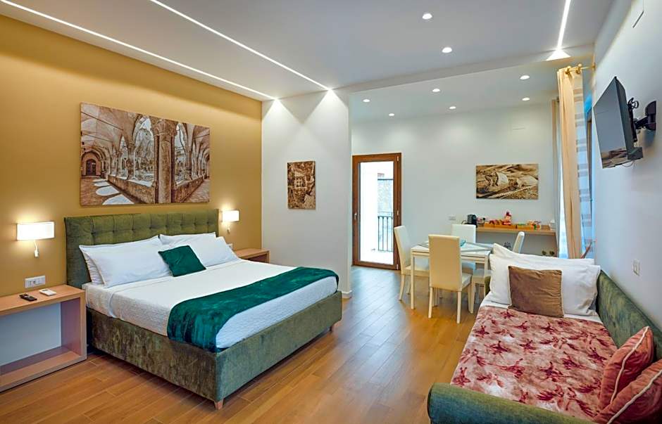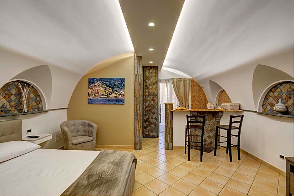 Inside, a bright, characterful base offers practical comforts for easy days in Sorrento. A private entrance opens to a terrace, and a kitchenette equipped with kitchenware waits for quick meals or a midnight snack. A balcony provides a sunny spot for morning coffee, while non-smoking rooms and an elevator add thoughtful convenience to daily routines.