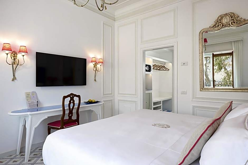 This room has luxurious furnishing and a marble bathroom. The balcony overlooks the garden and offers a lateral sea view. Free Wi-Fi is also available. Includes free access to the beach, use of deck chairs, parasols and towels.