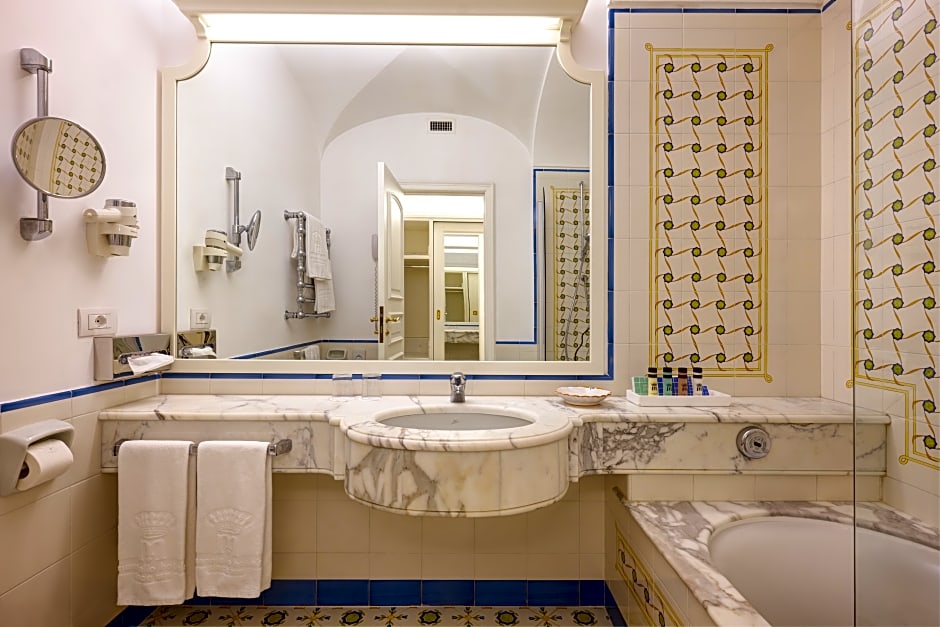Elegantly furnished rooms with 32" LCD TV, marble bathroom, balcony overlooking Gulf of Naples. Wi-Fi is free.