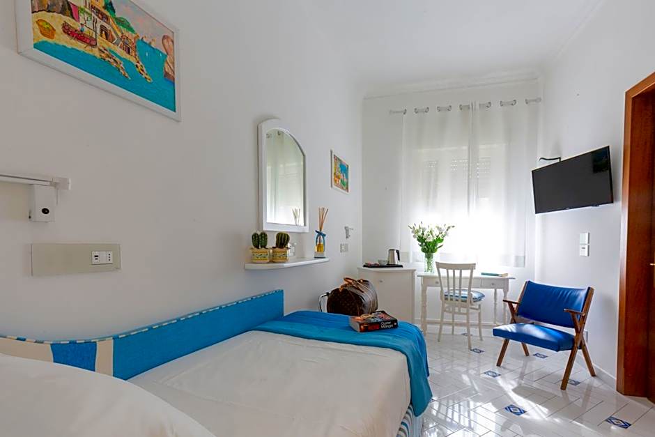 With handcrafted Vietri tiles on the floor and quality bed linen, this room has a flat-screen TV and air conditioning.