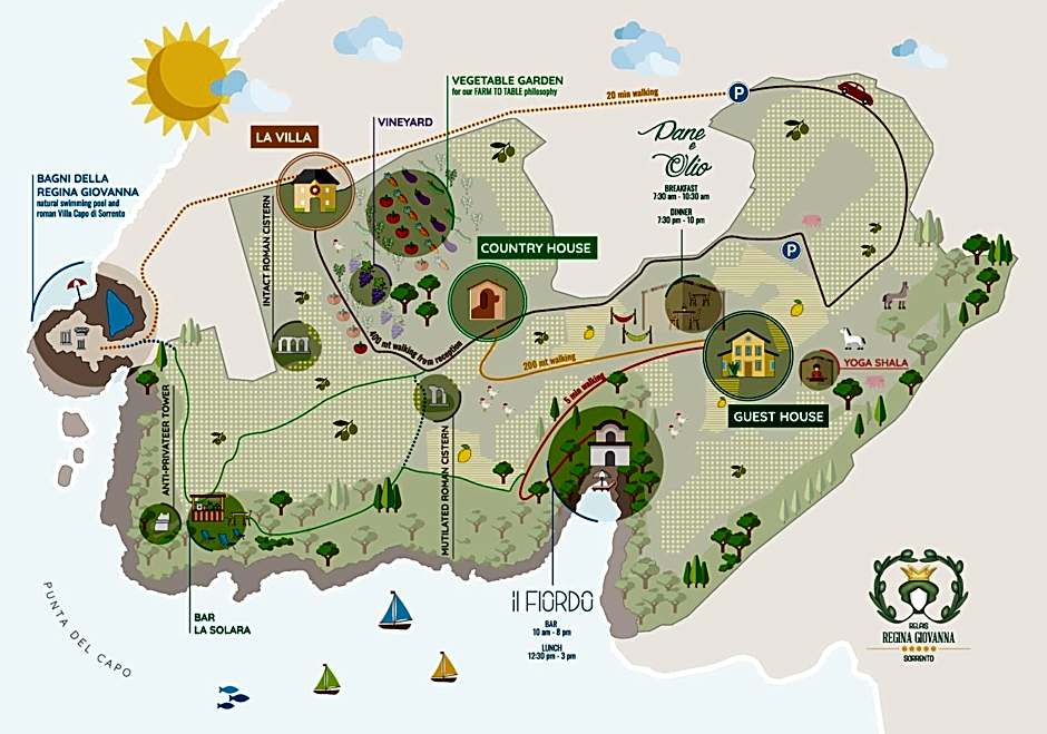 I can't say enough nice things about the staff and facilities of Relais Regina Giovanna! Our room had a beautiful view of the sea, which was a lovely sight to wake up to after a long flight. We got in late, but the staff was able to find us a small meal from the kitchen. And can we talk about the gorgeous breakfast? Everything was fresh and made/grown there, and tasted that way. We made it to the private cove late in the day, just in time for sunset, and kicked ourselves for not spending more time there. It was quiet and simply perfect. They had a shuttle to downtown Sorrento, which made things a whole lot easier. Otherwise expect to pay 35 euros to get back to the hotel for a taxi. Oh, don't miss out on their homemade Limoncello! Delicious. Thanks for making our stay special. It was a perfect intro to the Amalfi Coast and we'll be back for sure!
