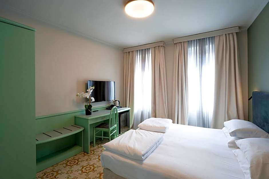 The view from the hotel terrace from my 2nd floor window was absolutely the best I have been to. Directly towards the Old Town's centre so you can enjoy a cup of coffee or glass of wine on the terrace and look down towards the busy but very nice and quiet street. And a bonus - sometimes a street musician came to play in the morning or in the evening - you open the window and get a live concert. I felt like in heaven. It was simply wonderful. The room was very spacious, very clean, had a bath also in the room, fridge. The hotel is located exactly in the center of Stresa - Alibus brings you from Terminal 1 bus stop directly to the hotel (it is just behind a small church). Extremely convenient. During the evening it is quiet, not too many tourists staying up for too long - many retired people in the city, who go to bed quite early, I suppose. The lake side panoramic walk is just stunning and just a minute away from the hotel. Service was nice, staff is very friendly and polite.