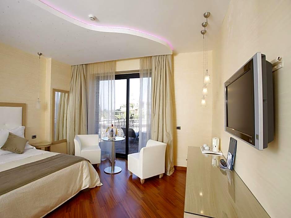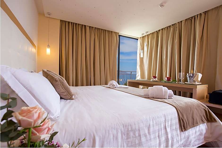 Features a terrace overlooking the Mediterranean Sea, a living area, and a Turkish bath. All rooms come with air conditioning, a mini-bar and a flat-screen satellite TV.