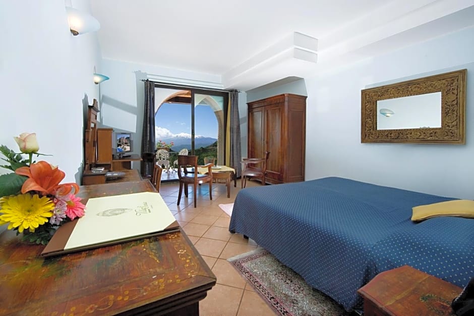 Double Deluxe room with terrace and Etna View is 258 square feet and includes a double bed 131-150 width.