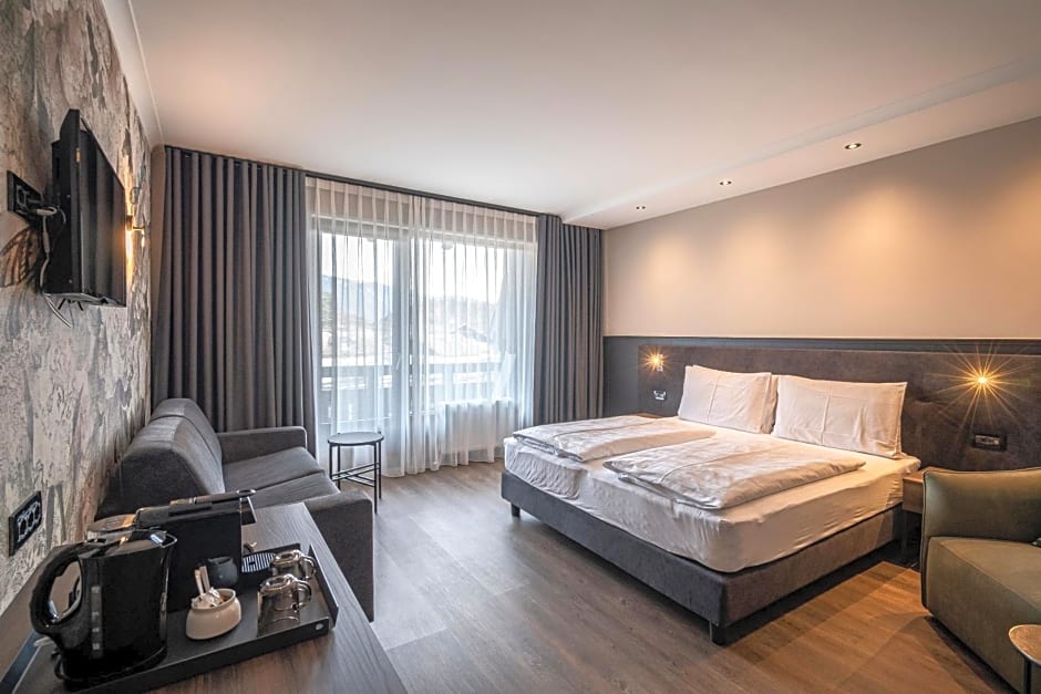 Hotel Tirolensis offers One-Bedroom Apartments with a room size of 592 sqft, accommodating up to 4 adults with a Queen size bed and a sofa bed. Smoking is not allowed in these apartments.