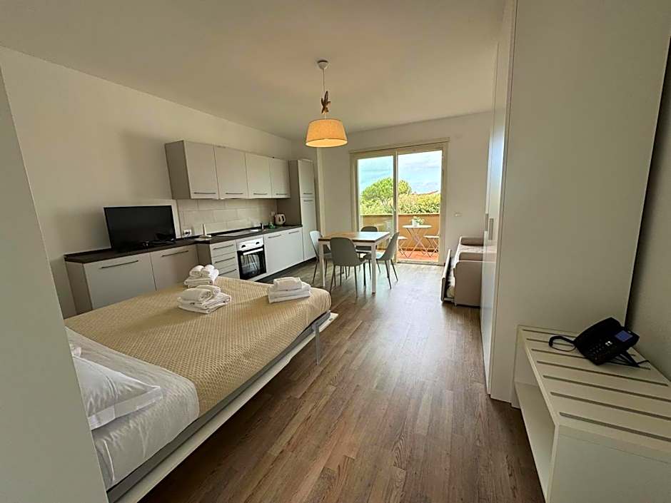 The owner Chiara was super friendly , she speaks english , the room was bigger than expected , clean , with all facilities, full kitchen , welcome kit , TV and Aircondition and a Balkony. The location was the amazing, its 4 min walk from the beach. The whole area is lovely. There is swimming pool and car park in the residence.