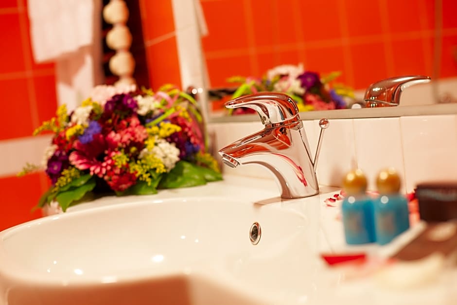 Featuring free toiletries and bathrobes, this double room includes a private bathroom with a shower, a bidet and a hairdryer. The air-conditioned double room features a flat-screen TV, soundproof walls, a mini-bar, a wardrobe as well as garden views. The unit has 1 bed. This room offers: - Overnight stay include a buffet breakfast - One-time access per person to the wellness area, which includes a sauna, Turkish bath, heated thermal pool, lumbar hydromassage, footbed, cervical, Kneipp tub, vascular path, aromatized showers, sailing showers, and relaxation area with an herbal tea corner - Wellness kit with a bathrobe, a towel and slippers