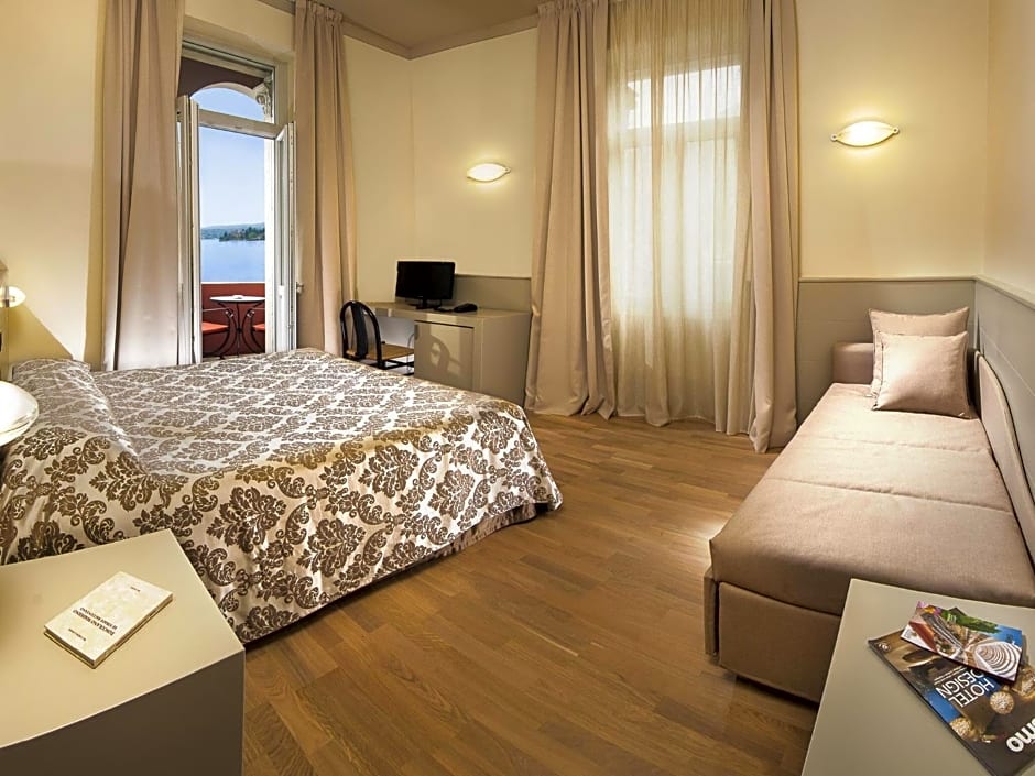 But that’s not all—prepare to have your senses awakened by the natural beauty that surrounds you! The picturesque landscapes, dotted with lush greenery and breathtaking views, provide a canvas for your perfect Italian getaway. Whether you prefer to take a leisurely walk along the lakeside promenade, venture up into the surrounding hills for panoramic vistas, or soak up the sun by the outdoor swimming pool, you’ll find that every moment is designed for relaxation and delight. How about lounging with a good book or napping underneath the warm Italian sun? The hotel's terrace, furnished with inviting beach chairs and loungers, is the ideal setting for this tranquil experience.
