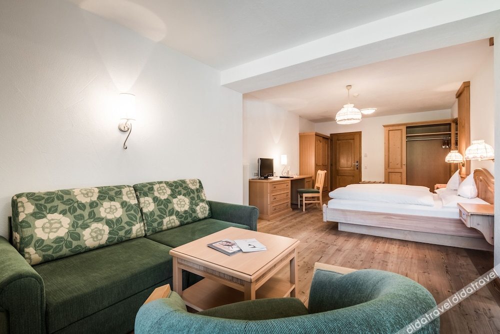 Offering lovely views of the Dolomites, this Alpine-style room includes a comfortable lounge area, an LCD satellite TV and a private bathroom with hairdryer.