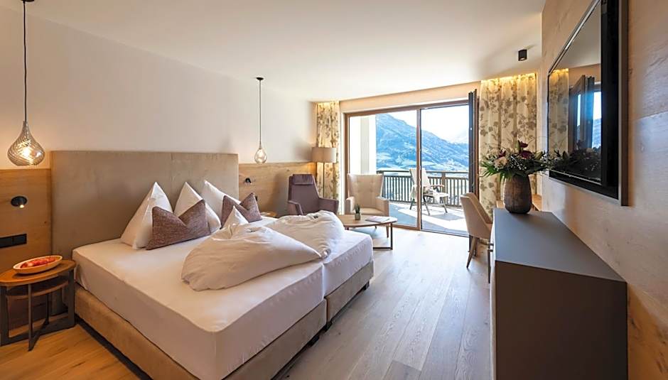 Two all-season pools offer options for every mood: an outdoor heated saltwater infinity pool with stunning views and an indoor heated pool, both adults-only. For the alpine ambiance, balconies and garden views frame the landscape, and small touches like free toiletries and extra-long beds add to the overall comfort.