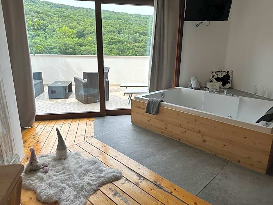 The hot tub and spa bath are the special features of this double room. The spacious double room features air conditioning, a tea and coffee maker, a terrace with garden views as well as a private bathroom boasting a walk-in shower. The unit has 1 bed.
