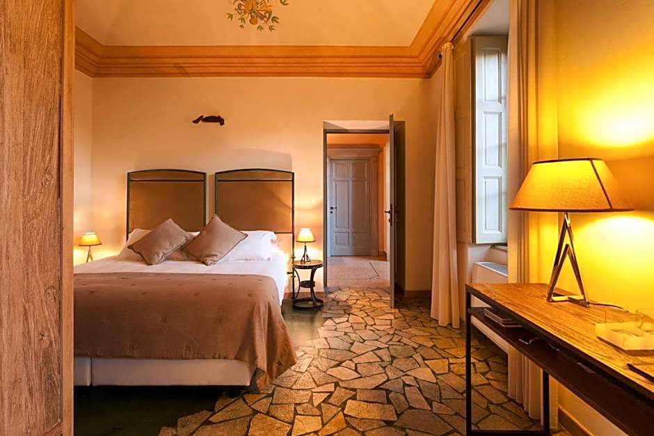 Large suite featuring a design bath and a balcony with views of the Piedmont countryside or of the garden.